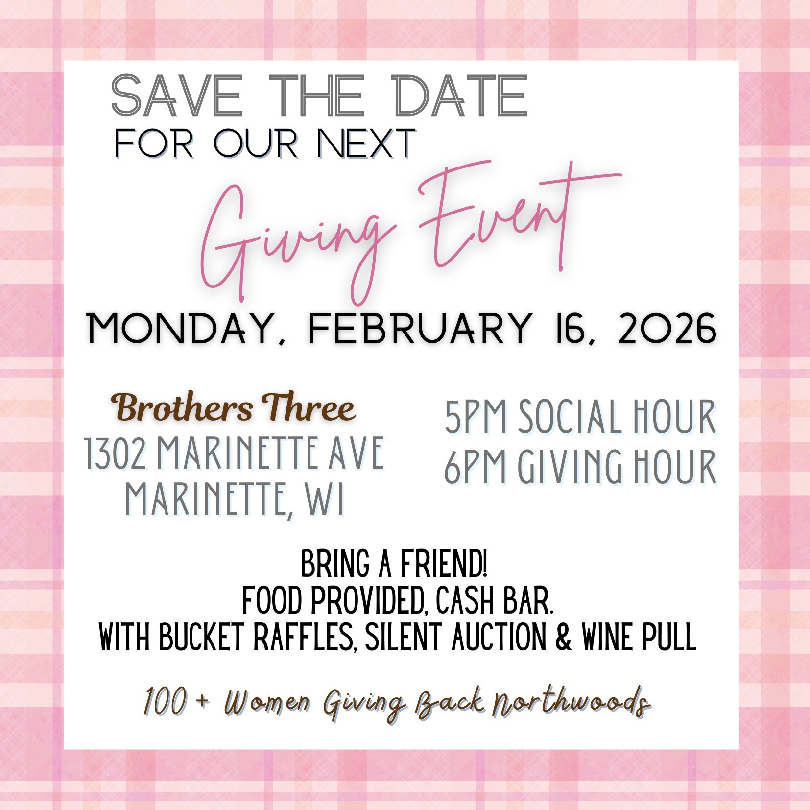 Current members - this is our annual Plus One event where we encourage you to bring a guest! It’s a fun night out, and our goal is to double our impact in the community with the additional $100 donation from the guest attendees.
